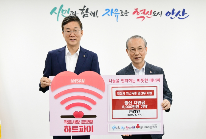[뉴스서울] 안산시는 ㈜경안으로부터 관내 저소득층 임산부 및 출산 가구를 지원하기 위한 지원금 2,000만 원을 기탁받았다고 18일 밝혔다.