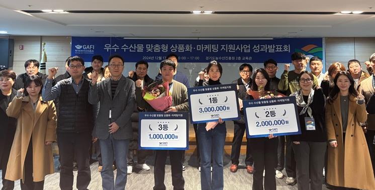 진흥원은 참여기업 6개사에 대한 마케팅 성과 발표를 진행하고, 심사위원의 평가에 따라 ▲고양시 어니스트쿡(3백만 원) ▲김포시 다산종합식품(2백만 원) ▲남양주시 모모프렌즈(1백만 원) 등 3개 업체에 총 6백만 원의 시상금을 수여했다.