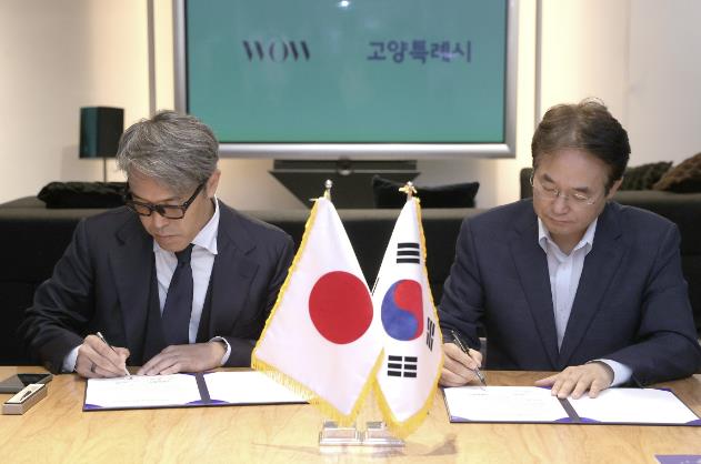 ▲ 고양특례시-(주)와우 공동협력 업무협약식 타카하시 히로시 와우 대표(좌), 이동환 고양특례시장(우) |