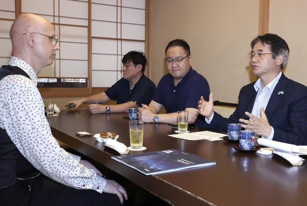 ▲ 일본게임보존협회 조셉 레돈 이사장에게 고양경제자유구역 설명하는 이동환 고양특례시장 |