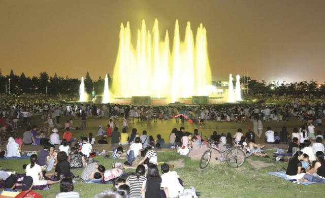 한편 일산호수공원의 노래하는 분수대도 더위를 식히기에 제격이다. 광장의 계단·바닥 분수 시설은 매일 운영(낮 12시~오후 6시, 화요일 휴장)한다. 특히 밤이 되면 노래하는 분수대는 음악과 함께 화려한 조명이 어우러진다. 분수대는 7~8월 동안 수~금요일, 주말과 공휴일에 가동하고 오후 8시와 8시 30분 두 차례 공연을 선보인다.