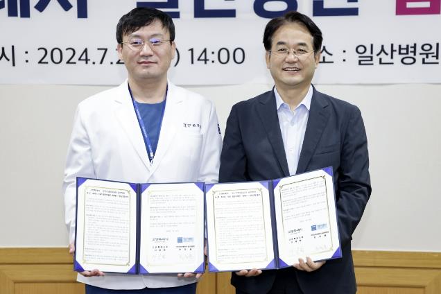 | ▲ 고양특례시-일산병원‘보건·복지·의료 통합서비스 제공’업무협약식_이동환 고양특례시장(오른쪽), 한창훈 국민건강보험공단 일산병원장(왼쪽) |