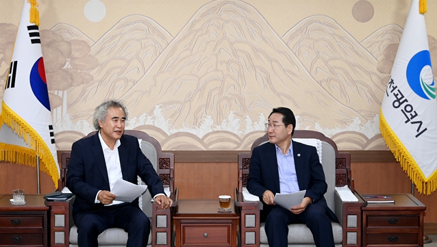▲ 유정복 시장과 한체대 최관용 교수의 면담 |