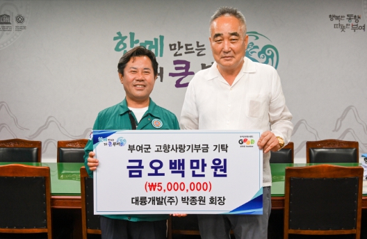 [뉴스서울] ㈜대륭개발 박종원 회장이 지난 2일 부여군 고향사랑기부금 500만 원을 기탁하며 부여 사랑을 드러냈다.