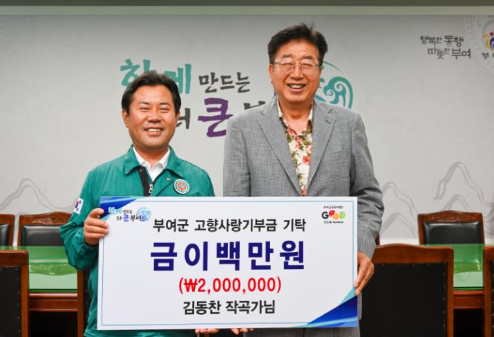 [뉴스서울] 부여군 부여읍 저석3리가 고향인 김동찬 작곡가는 지난 21일 부여군(군수 박정현)에 고향사랑기부금 200만 원을 기탁했다.