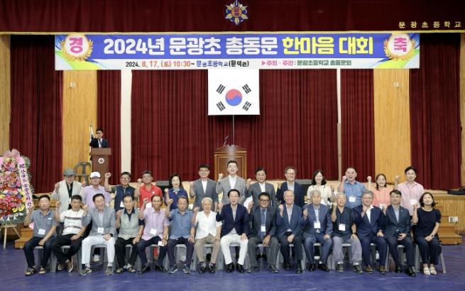 김수응 총동문회장은 대회사에서 “문광초등학교 출신임을 가슴 속에 뿌듯한 자긍심으로 안고 살아왔다”며 “이번 한마음대회를 계기로 자랑스러운 모교의 전통에 흠이 나지 않도록 전 동문이 화합하고, 어린 시절 함께 웃고 뛰며 즐겼던 운동회의 추억을 되살려 오늘 하루 선후배 동문 간의 사랑과 정이 가득한 만남의 장이 되기를 바란다”고 말했다.