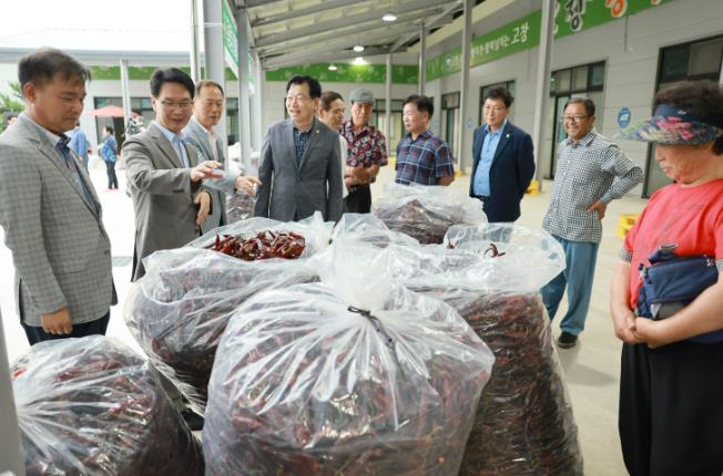 23일 오전 7시 심덕섭 고창군수가 건고추장터를 찾아 고추농가를 격려하고, 고추상인 등 지역주민들을 만나 애로사항을 청취했다.