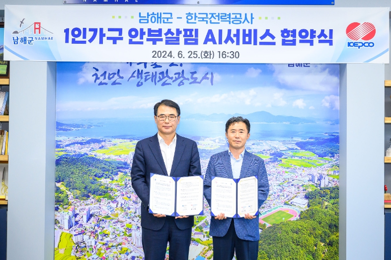 [뉴스서울] 남해군은 25일 전력·통신 빅데이터를 활용해 위기를 감지하는 ‘1인가구 안부살핌 서비스’를 추진하기 위해 한국전력 남해지사와 업무협약을 체결했다.