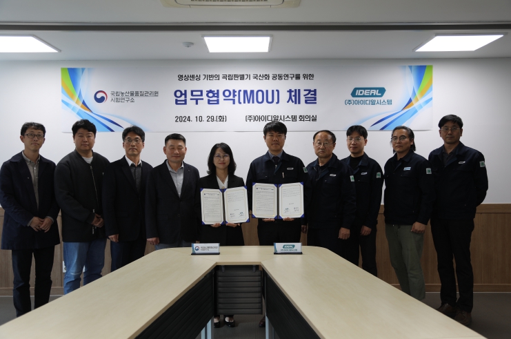 [뉴스서울] 국립농산물품질관리원 시험연구소는 10월 29일 ㈜아이디알시스템(대표이사 최보규)과 정곡검사의 과학화를 위하여 국내 실정에 최적화된 맞춤형 곡립판별기의 공동 개발에 관한 업무협약을 ㈜아이디알시스템 회의실에서 체결했다.