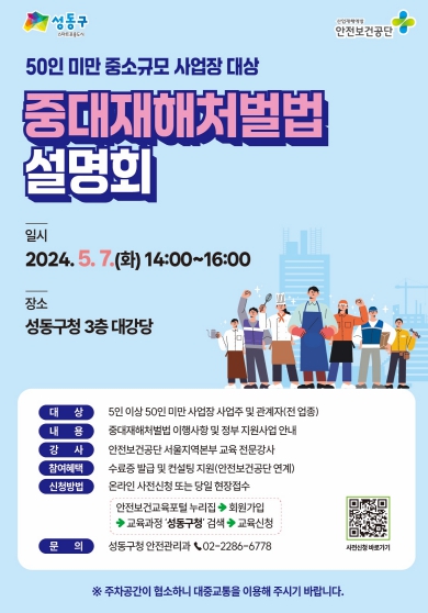 ▲ 오는 7일 성동구가 50인 미만 사업장 대상 중대재해처벌법 설명회를 개최한다. |