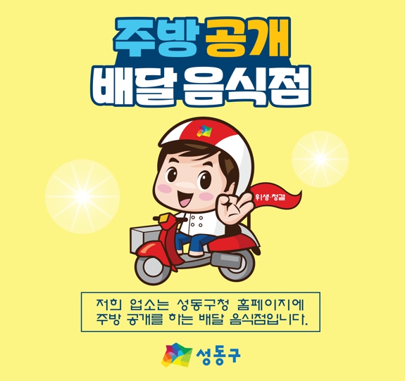 참여 대상 업소는 객석이 없거나 1~2개인 배달을 전문으로 하는 일반음식점과 휴게음식점으로, 신규 참여 신청 업소의 경우 조리장 위생점검 후 성동구청 누리집에 사진과 영상이 공개된다.