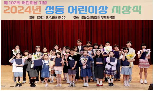 먼저, 성동구는 지난 4일 온마을 대축제 '와글와글'과 연계하여 가정과 학교생활에서 모범이 되는 어린이를 대상으로 성동구청장 훈격의 표창을 수여하는 '2024년 성동 어린이상 시상식'을 개최했다.