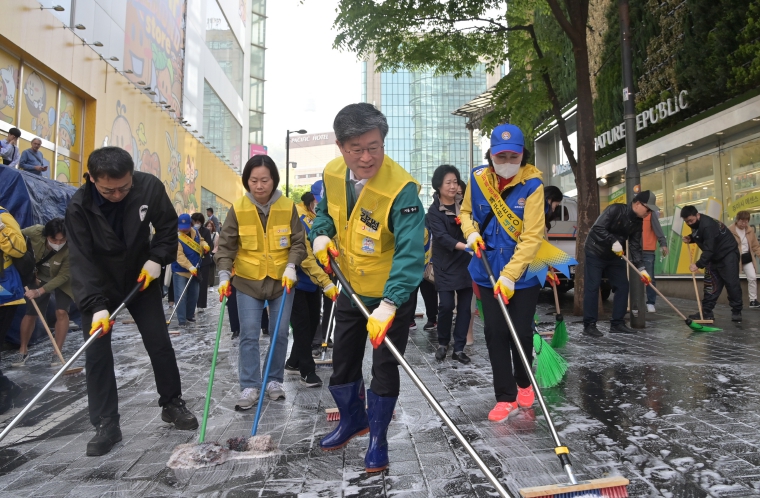 청소구간은 명동역 6번 출구부터 명동예술극장을 지나 관광경찰 안내소까지 총 600m다.