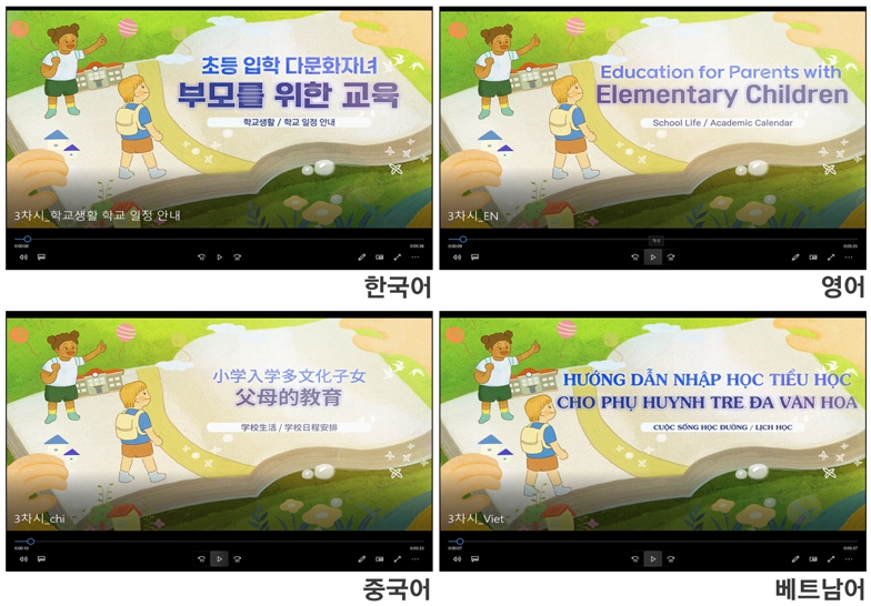 또 현장체험학습, 공개수업의 날 등 주요 행사와 담임선생님과의 상담 방법과 절차 등도 담았다. 1편당 6분~10분 길이며 한국어, 영어, 중국어, 베트남어 4개 자막으로 제작됐다.
