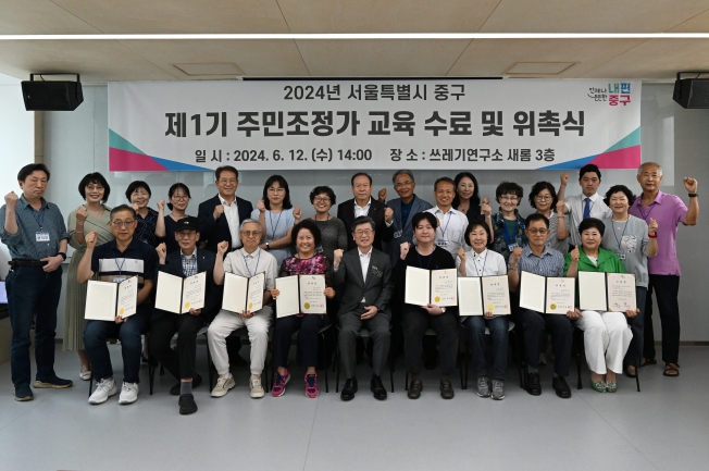 [뉴스서울] 서울 중구가 지난 12일 신규 주민조정가 24명을 대상으로 주민조정가 양성 교육 수료식 및 주민조정가 위촉식을 개최했다.