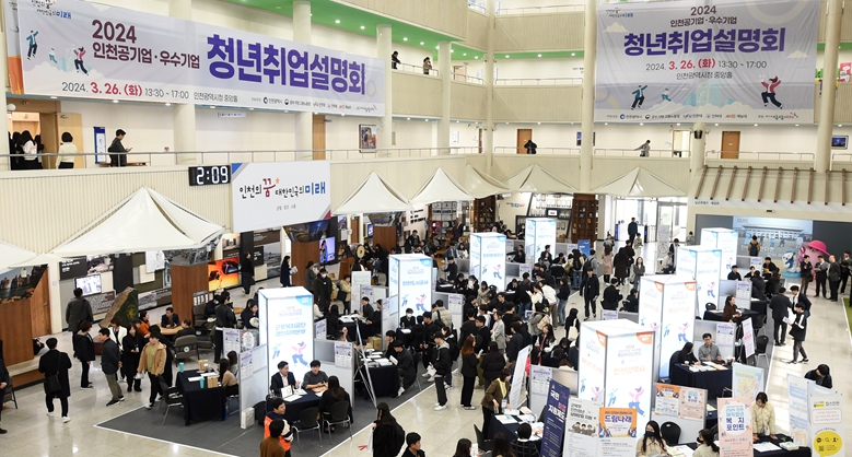 ▲ 3월 26일 시청 중앙홀에서 '2024 인천공기업ㆍ우수기업 청년취업설명회'가 열리고 있다. |