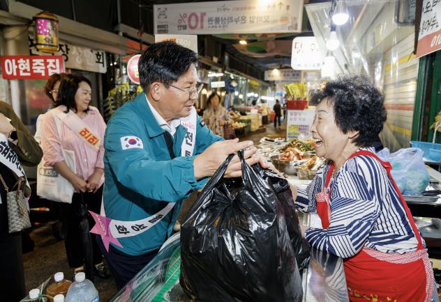 ▲ 지난해 9월, 추석을 맞아 아현시장에 방문해 상인을 격려하는 박강수 마포구청장 |