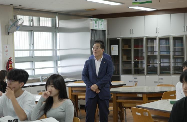 이어 하윤수 교육감은 수업에 참여한 학생들을 격려하고, 교사들과 의견을 나누는 시간도 가졌다.