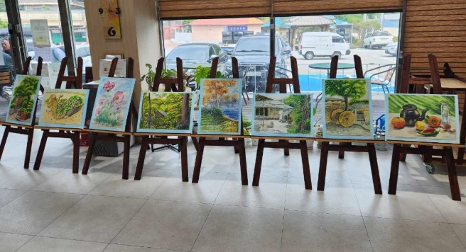 청성면 마을 화백으로 불리며 일상에서 흔히 접할 수 있는 꽃, 나무, 농기계 등을 소재로 어르신의 따뜻한 시각을 그림 작품에 녹였다.