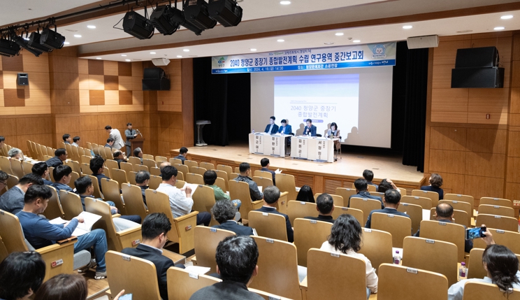 [뉴스서울] 청양군은 지난 19일 청양군 문예회관 소공연장에서 김돈곤 청양군수 주재로 군의원, 정책자문위원회, 정책특별보좌관, 군관리계획 주민참여단, 외부 전문가 등 100여 명이 참석한 가운데 ‘2040 청양군 중장기 종합발전계획 수립’ 연구용역 1차 중간보고회를 개최했다.