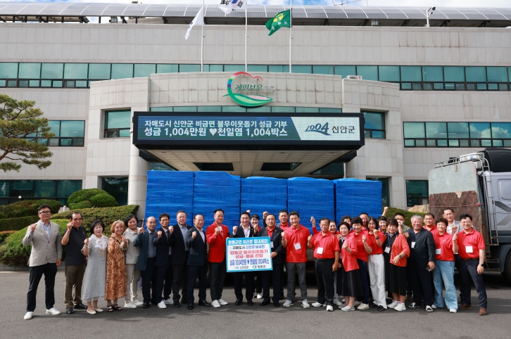 30일 군에 따르면 신안군 비금면이 영동군을 위해 1,004만원의 성금과 1,004박스(2,000만원 상당)의 천일염을 기부하며, 두 지역 간의 깊은 우정을 다시 한번 확인했다.