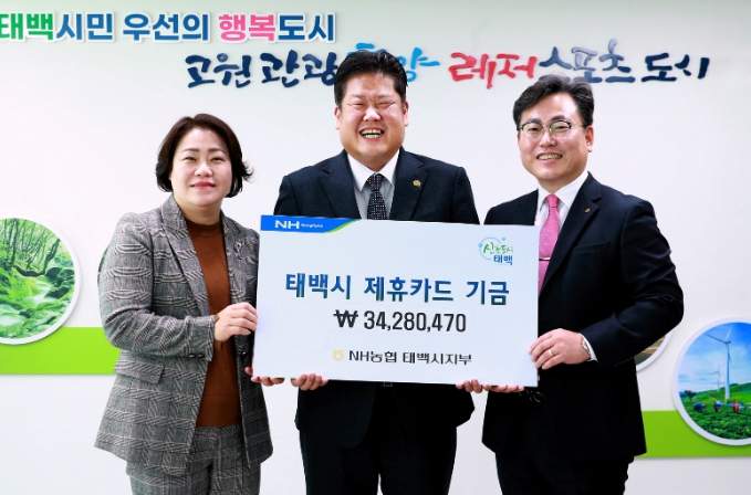 [뉴스서울] NH농협태백시지부는 지난 21일 태백시에 2023년도분 NH농협 제휴카드 적립기금 34,280,470원을 향토장학금으로 기탁했다.