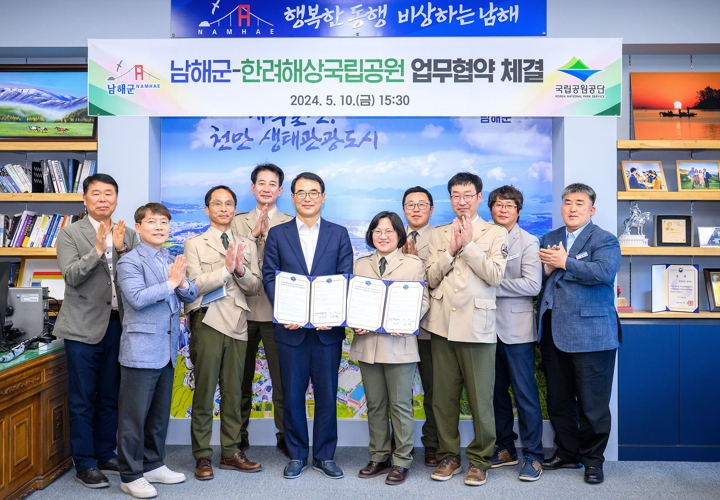 [뉴스서울] 남해군은 10일 군수실에서 한려해상국립공원과 상호 협력적 공원관리를 위한 헙무협약을 체결했다.