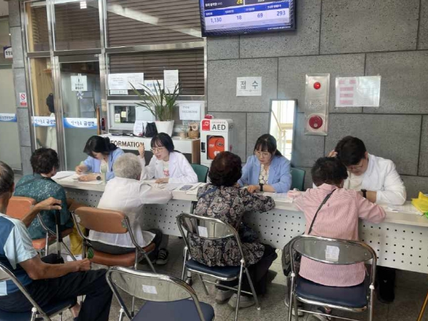 2024년 노인 무료 안(眼)검진은 한국실명예방재단에서 안과전문의를 포함한 검진팀 6명이 방문하여 시력검사, 굴절검사, 안압검사, 세극등 현미경검사 및 질환상담을 실시했다.
