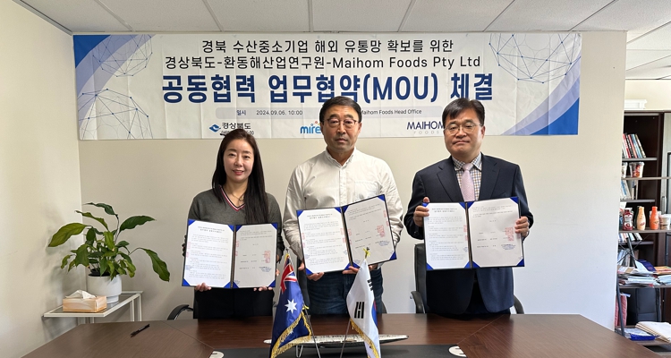 이와 더불어 경북도는 6일 호주 시드니에서 경북도와 호주유통업체 마이홈푸드기업 (재)환동해산업연구원 3자 간 업무협약(MOU)을 체결해 호주 신규시장 개척을 기념하고, 10월에는 마이홈푸드사가 운영하는 시드니 서울마트에서 경북수산물 특판전을 개최하여 현지 시장 진입 유통 판로를 확보한다.