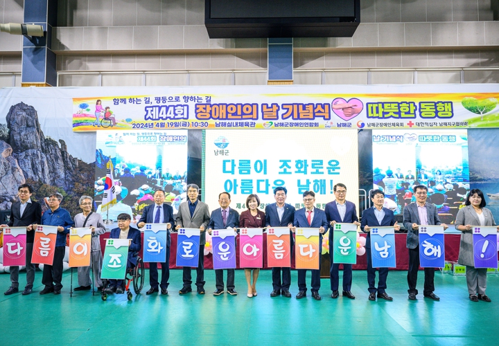 [뉴스서울] 남해군은 지난 19일 남해실내체육관에서 ‘함께 하는 길, 평등으로 향하는 길’이라는 슬로건으로 제44회 장애인의 날 기념행사를 개최했다.