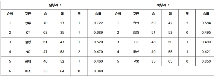 ▲ 2024 KBO 퓨처스리그 팀 순위 |