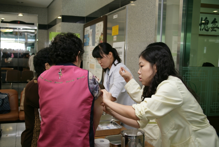 ▲ 지역 어르신들이 겨울을 대비하여 독감 예방접종을 하고 있다. |