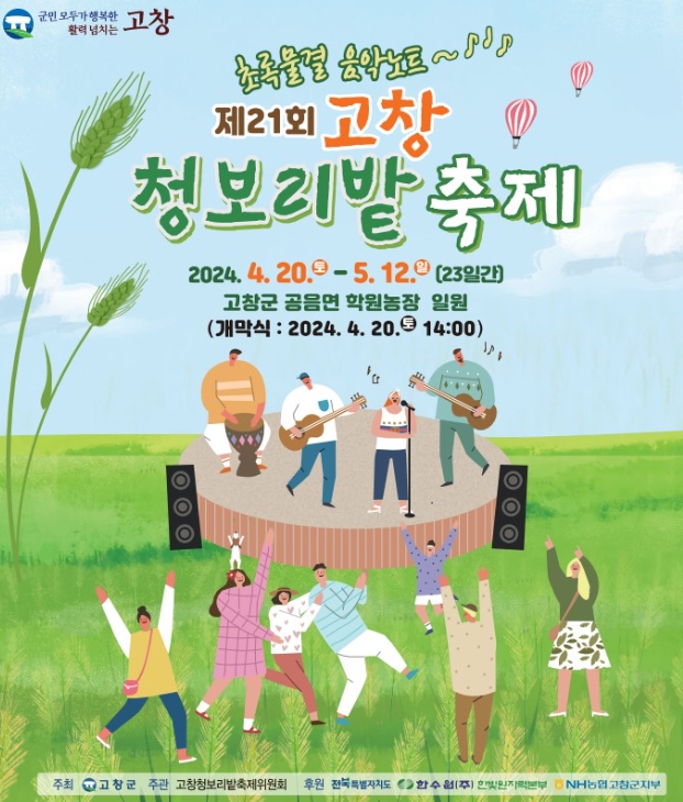 올해로 21회째를 맞는 ‘고창 청보리밭축제’는 전국 최초 ‘보리’를 주제로 한 경관농업 대표 축제다. 고창군이 주최하고 고창청보리밭축제위원회가 주관하며 전북특별자치도, 농협고창군지부, 한수원(주)한빛원자력본부가 후원한다.