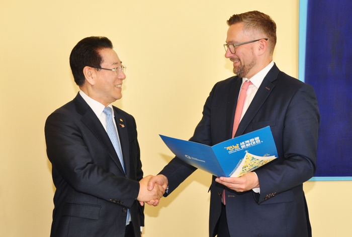 [뉴스서울] 김영록 전라남도지사는 25일(현지 시간) 독일 베를린의 작센주 베를린 대표부를 방문해 마틴 둘릭 연방상원의원 겸 작센주 부총리와 공식면담을 갖고 지방소멸 위기 극복을 위한 실질적 지방분권 실현 방안을 논의했다.