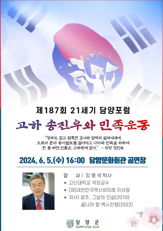 ▲ 제187회 21세기 담양포럼, 6월 호국보훈의 달 특별강연 개최 |