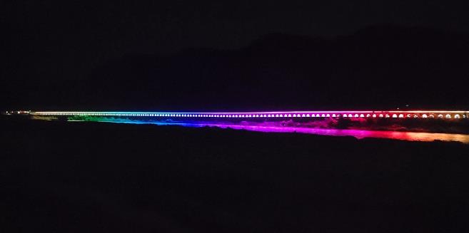 산청군은 700m 길이의 피암터널 외벽을 활용해 경호강 방면으로 파노라마 연출이 가능한 야간 경관조명을 설치했다.