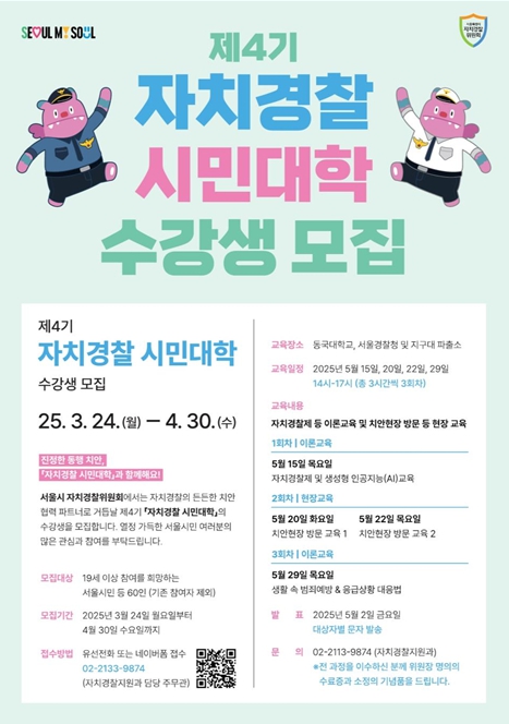 ▲ 제4기 서울시 자치경찰 시민대학 모집 포스터 |