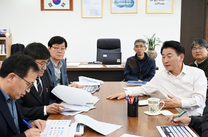 ▲ 김동근 시장이 4월 4일 시장실에서 ‘제4차 문화‧교육정책 전략회의’를 진행하고 있다. |