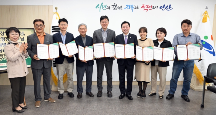 안산시(시장 이민근)는 지난 20일 시청에서 분뇨수집·운반차량 도색 민간지원사업 추진을 위한 시행 협약식을 개최했다고 21일 밝혔다. 이번 협약은 관내 분뇨수집·운반업체 9개소가 함께 참여했다.