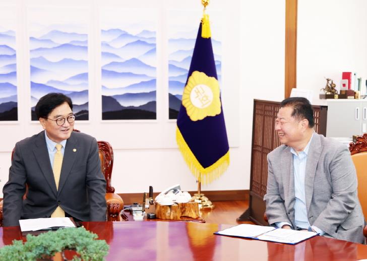 이날 간담회는 국회의장실에서 열렸으며, 김 시장은 지속가능한 에너지전환과 알이100(RE100) 무역장벽 대응 방안을 논의했다.