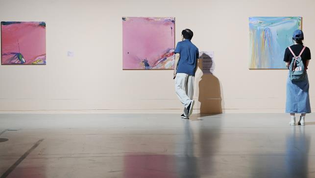 | ▲ 시민들이 수원시립미술관에서 진행 중인 올리비에 드브레 개인전 전시를 관람하고 있다. |