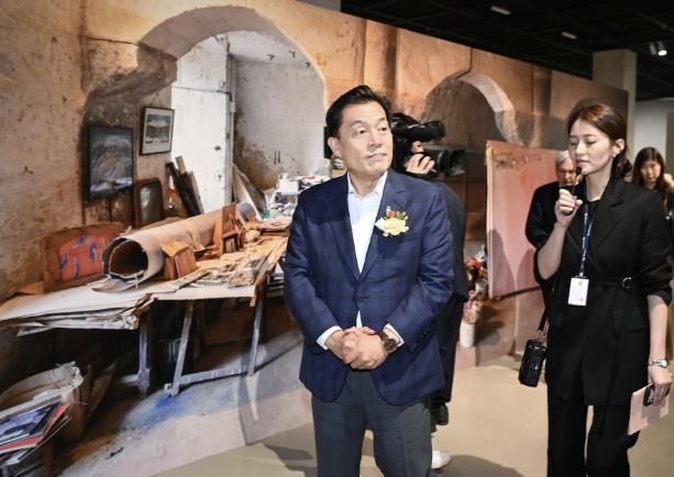 | ▲ 이재준 수원시장이 수원시립미술관에서 올리비에 드브레 개인전을 관람하고 있다. |