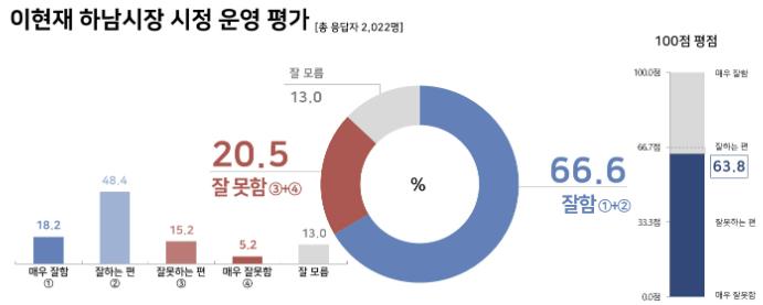 | ▲ 이현재 하남시장 시정운영 평가…시민 66.6% "잘하고 있다" |