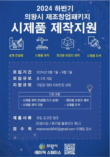[뉴스서울] 의왕시 메이커 스페이스는 ‘2024년 상반기 의왕시 제조창업패키지 시제품 제작 지원사업’을 성공적으로 마쳤다고 밝혔다.