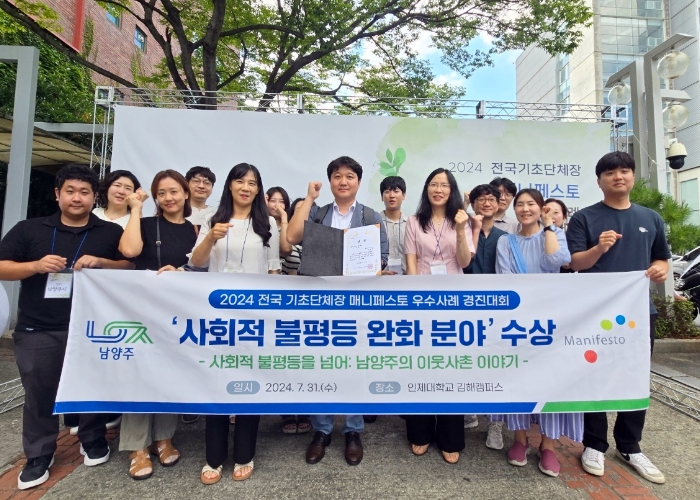 [뉴스서울] 남양주시는 지난달 31일 ‘2024년 전국 기초단체장 매니페스토 우수사례 경진대회’에서 사회적 불평등 완화 분야 우수상을 수상했다고 1일 밝혔다.