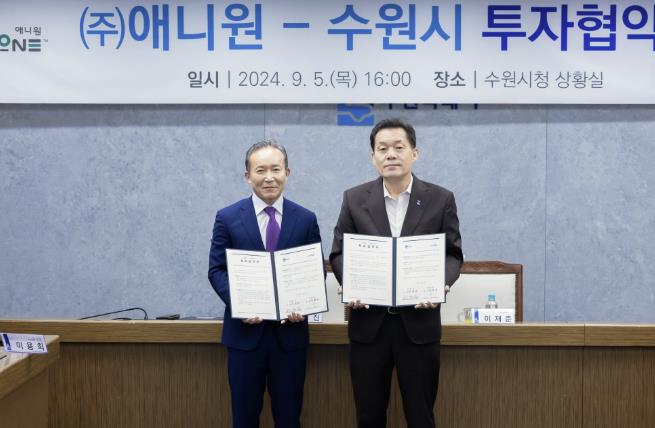 협약에 따라 ㈜애니원은 수원에 R·D시설을 건립하는 등 적극적인 투자로 양질의 일자리를 창출하기로 했다. 수원시는 각종 인허가 등 행정절차를 신속하게 처리해 사업이 원활하게 추진되도록 지원한다.