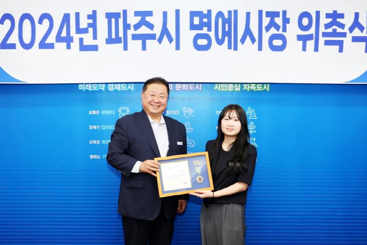 [뉴스서울] 파주시는 22일 적성융합고등학교 학생회장인 김승비 학생을 제29대 일일 명예시장으로 위촉했다.