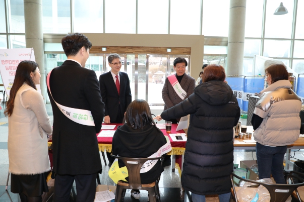 박범인 금산군수는 지난 11일 홍보 현장을 찾아 이정열 중부대 총장과 전입대학생 생활안정지원금 홍보 방안에 관해 논의하고 학생들에게 사업을 알리는 시간을 가졌다.
