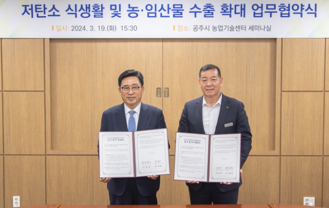 양 기관은 이번 협약을 통해 ‘저탄소 식생활 캠페인’을 확산, 지역 먹거리 순환 체계 내 탄소 중립을 실천하고 농·임산물 수출 확대와 유통구조 개선 등 다양한 분야에서 협력 체계를 구축하기로 했다.