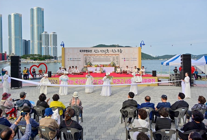 합동위령제와 함께 남도의 대표적인 국가무형유산인 ‘진도씻김굿’ 공연이 진행됐는데 공연의 전반부인 초가망석과 제석굿에는 산 사람의 만복을 빌고, 후반부인 고풀이, 씻김, 길닦음에는 고인의 극락왕생을 기원했다. 특히 이날 ‘고풀이’가 시작된 뒤에는 마치 오늘 이 행사를 축원하는 듯 제단 맞은편 하늘에 쌍무지개가 뜨는 신비로운 풍경이 펼쳐져서 참석자들의 탄성을 자아내기도 했다.